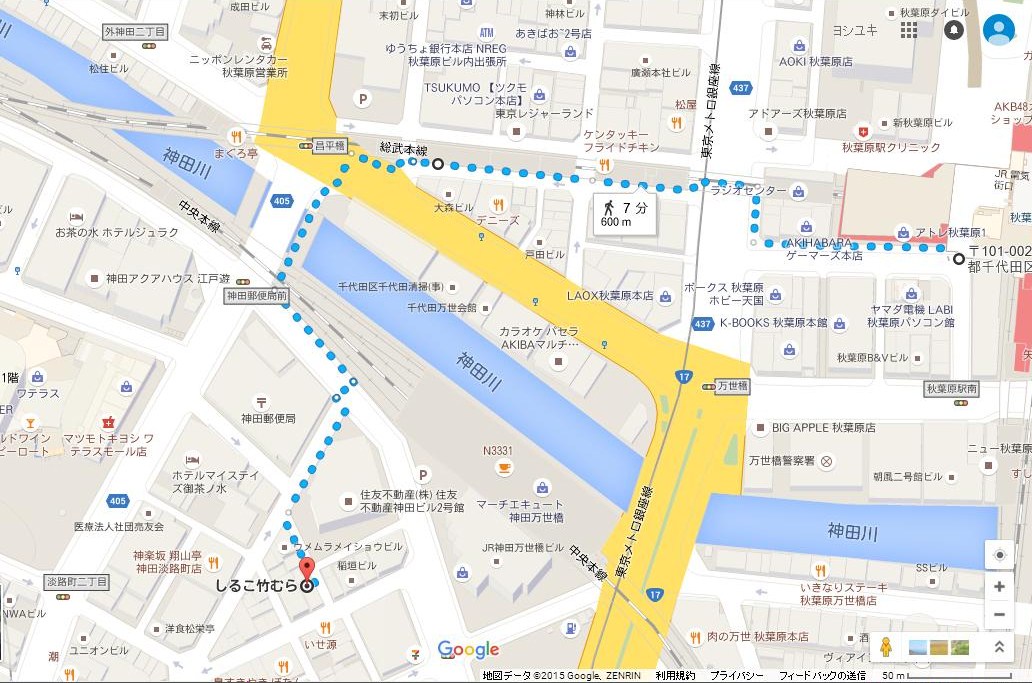 JR秋葉原駅電気街口から穂乃果の自宅のモデルとなったお店「竹むら」まで意外と近いのです。